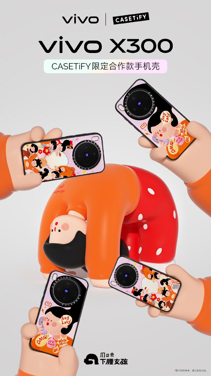 在官微9月29日的最新爆料,X300系列宣布与知名潮流品牌CASETiFY联合推出CASETiFY 限定合作款手机壳。这款限定手机壳携手艺术家@周日央,带来了极具辨识度的“不知疲倦、自信自洽的下腰女孩”形象,将手机从科技产品升级为潮酷态度和个性表达的载体。