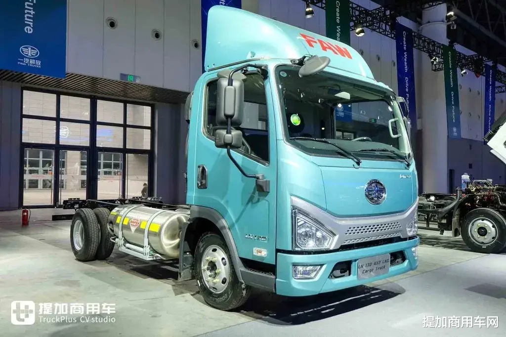 LITRON LN 130 4×2 LNG载货车底盘是解放LITRON匹配最新推出的LNG液化天然气车型,匹配350升总容积气瓶和15升油箱,搭载云内YN30NF发动机与法士特8J45TA变速箱,油气两用,综合续航最长可达900公里。车辆前脸运用全新造型,前围采用非金属材质,并增加舒适性选装包,带来舒适尊享驾乘体验。