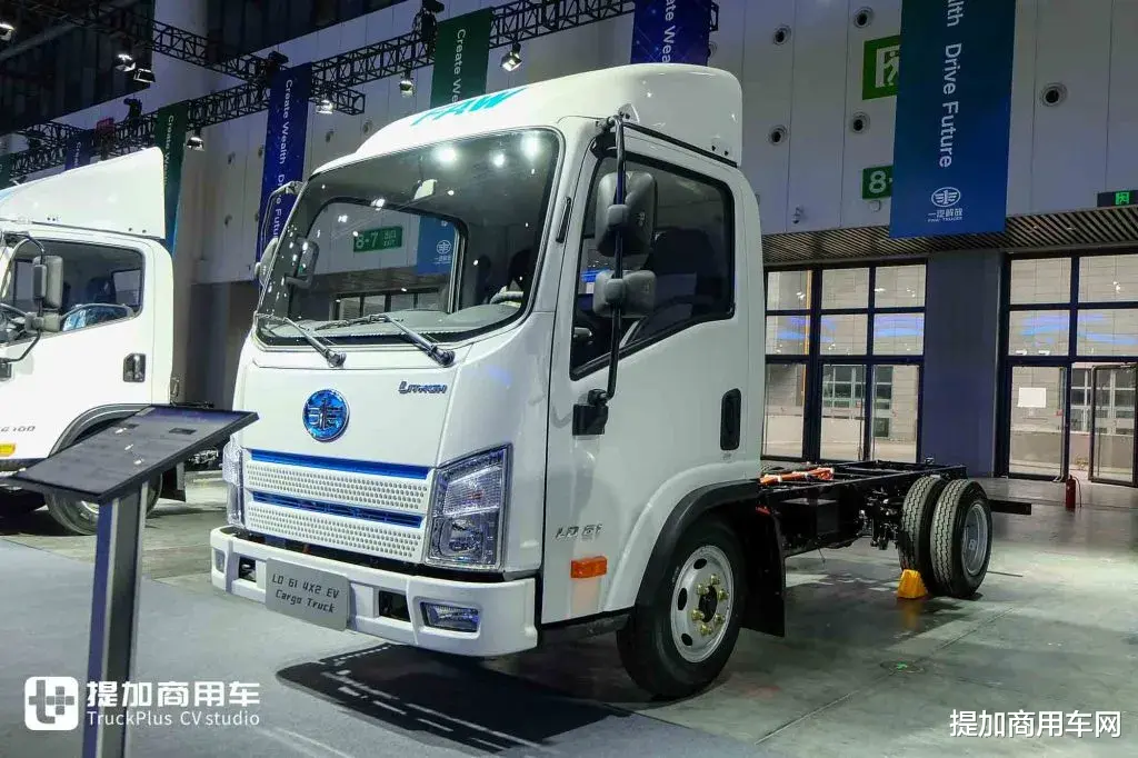 在新能源领域,LITRON品牌布局了多款产品。LITRON LD 61 4×2纯电动载货车底盘搭载一汽力神61kW·h单包电池与130EH电驱桥,综合续航150-220公里,提供经济/动力双模式,并支持四挡可调滑行能量回收。车辆标配1C快充与慢充接口,快充条件下电量从20%充至80%仅需36分钟。