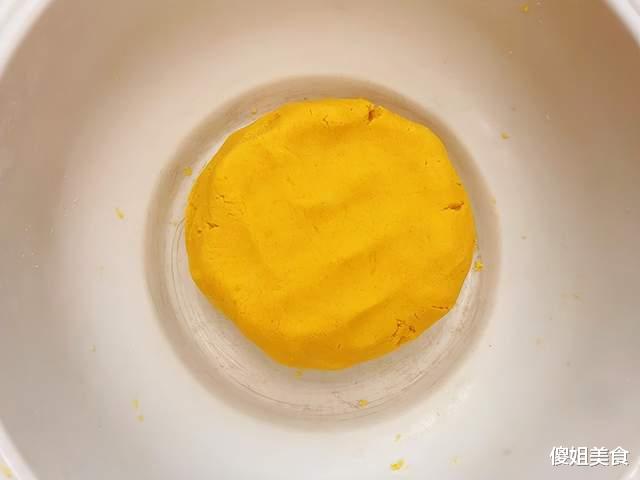 2、把南瓜去皮去籽,切成薄片,越薄越容易蒸熟,放进蒸锅里大火蒸15分钟,用筷子轻轻一戳就透,说明熟透了。蒸好的南瓜压成泥,然后一点点加入糯米粉,不要一次全倒进去,因为不同南瓜含水量不同,需要的糯米粉量也不一样,边加边搅拌,直到能揉成不粘手的面团。
