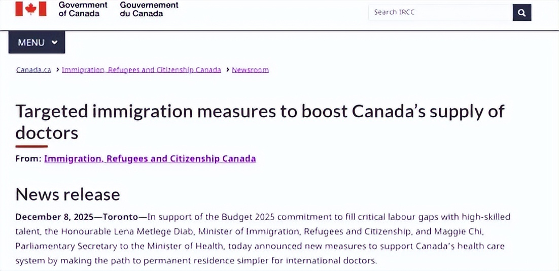 本次政策由移民部长Lena Metlege Diab与卫生部长议会秘书Maggie Chi联合公布,旨在让更多已经在加拿大工作的国际医生更便捷地留在加拿大,为国民提供稳定、可靠的医疗服务。