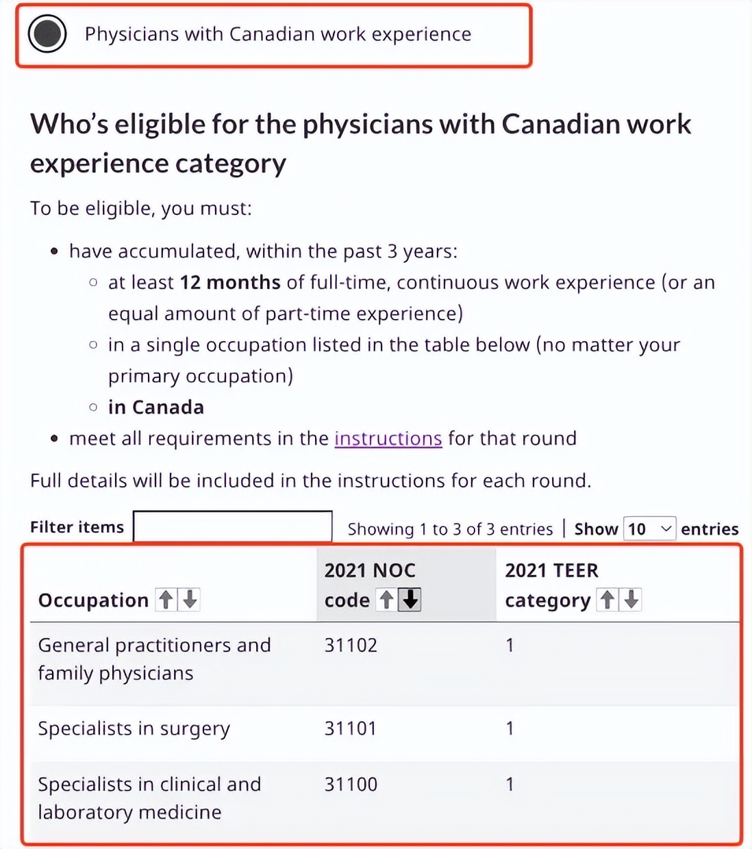 IRCC特别强调:认定资格基于你“实际从事”的加拿大工作经验,而不是你在档案里填写的主要职业。虽然只涉及3个NOC代码,但实际涵盖的职位非常丰富,可以说囊括了大部分医生专科。