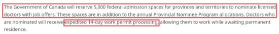 专为医生预留5,000个联邦名额,省提名不占额外配额