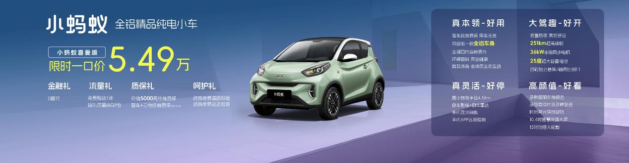 小蚂蚁喜爱版以全铝车身和251km续航,成为都市通勤的首选,限时一口价5.49万元;冰淇淋元气版凭借22kW同级快充、百变空间和萌趣设计,圈粉年轻女性,限时一口价3.99万元;多米则用“5座+SUV级通过性”,直击家庭用户的出行需求。