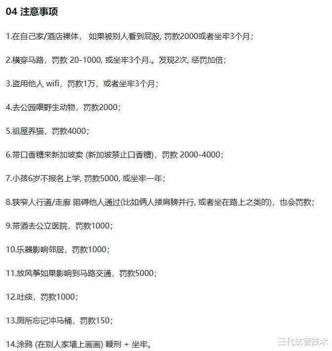 根据网友@嘻嘻橡皮擦的总结,新加坡的禁忌大概有 14 项。