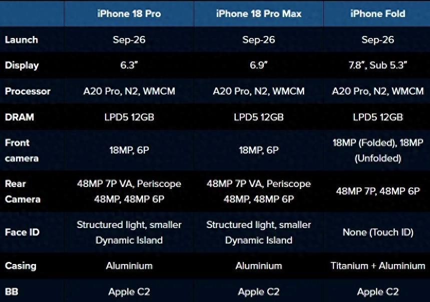 近日,分析师Jeff Pu在其报告中,提前透露了iPhone 18 Pro系列和折叠屏iPhone的诸多配置信息。据传,这三款机型将在今年秋季同步推出。