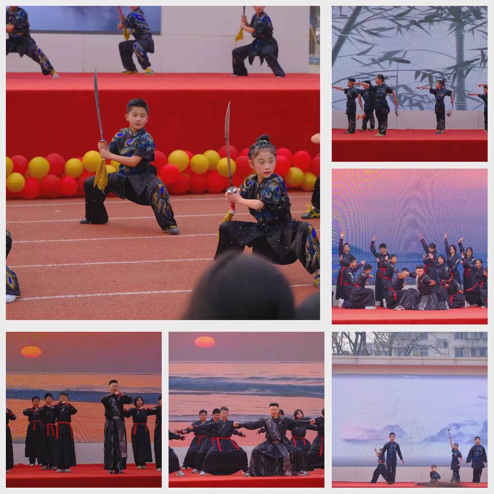 中华武术与集体搏击表演霸气亮相,千年武魂碰撞青春锋芒。马步扎稳爱国之根,出拳凝聚报国之志,一招一式尽显“自强不息”的古老训言,展现出七中学子强健的体魄与炽热的家国情怀。