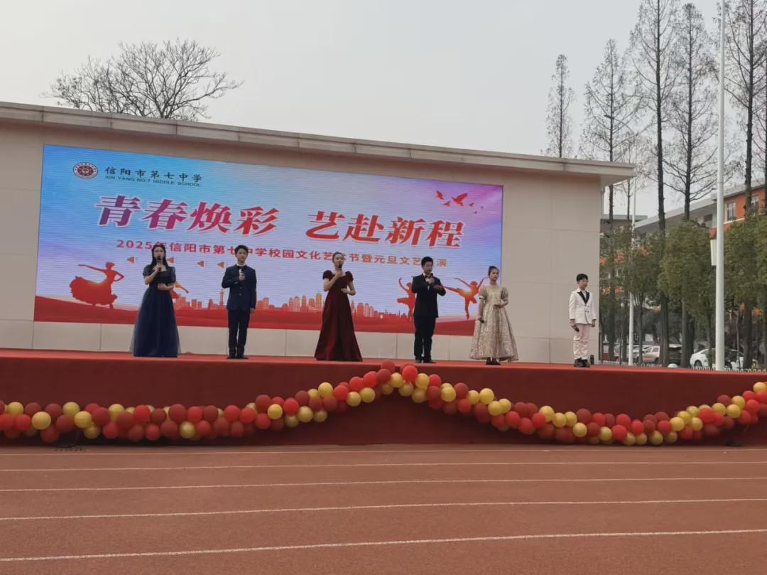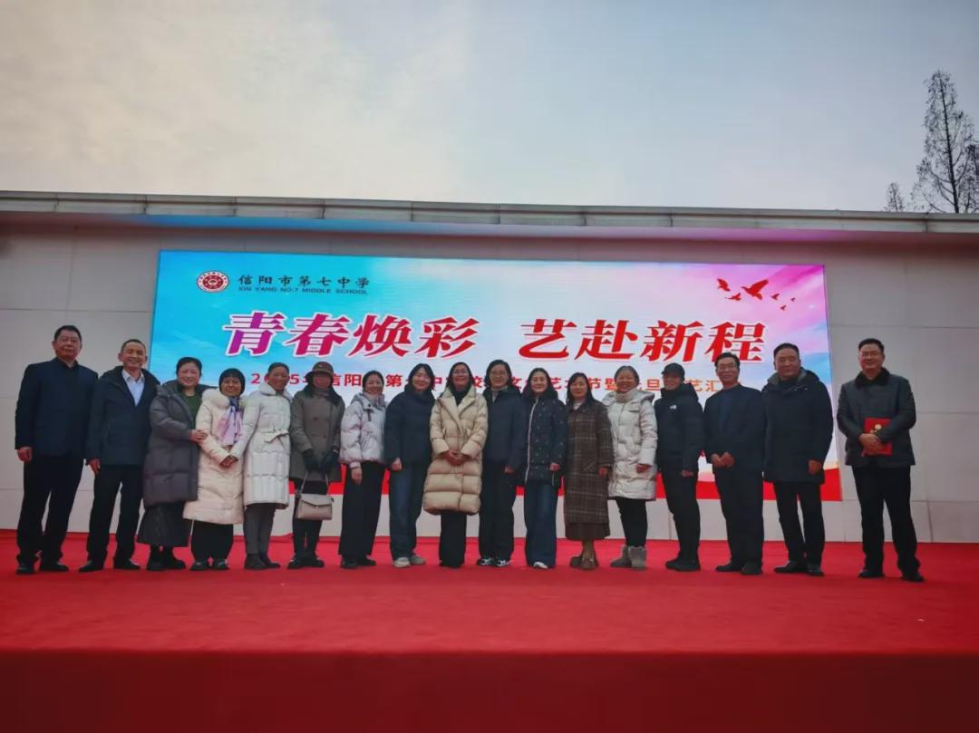 2025年12月30日下午,信阳市第七中学校园内欢声鼎沸、喜气盎然,“青春焕彩 艺赴新程”2025年校园文化艺术节及庆元旦文艺汇演正式拉开帷幕。学校党委书记、校长杜明良,全体领导班子成员以及陈玉芳等十六位功勋教师莅临现场,与全校师生共同见证这场青春洋溢的艺术盛宴。