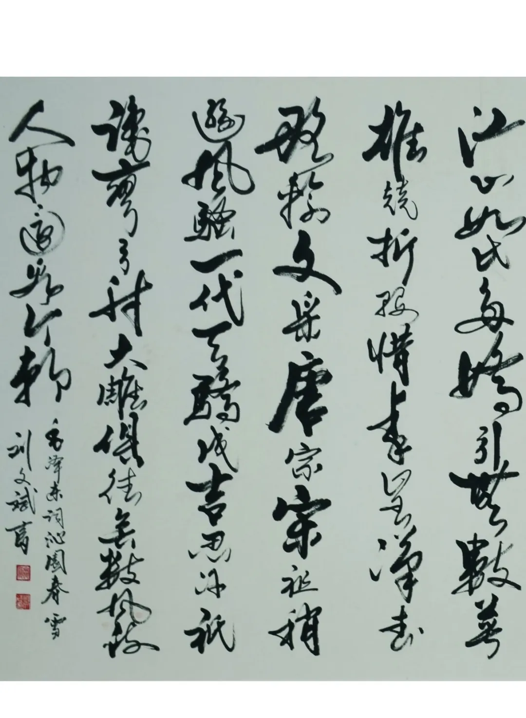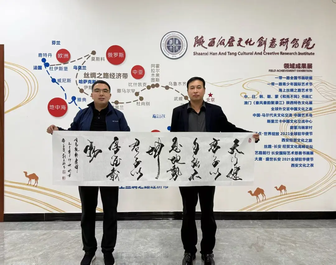从组织书画公益活动,到推动文创产品研发;从挖掘汉唐文化内涵,到助力地方文化经济建设——陕西汉唐文化创意研究院始终以“守正创新”的姿态,践行着文艺工作者的社会责任。而刘文斌的艺术探索,正是研究院这一初心的“具象表达”:他的作品,既有对汉唐书法“雄健大气”的传承,也有对当代审美“简约灵动”的创新;他的行动,既坚守“为人民创作”的根本,也践行“为时代立言”的使命。院社同心,方能行稳致远——这正是研究院在文化传承之路上不断前行的动力所在。