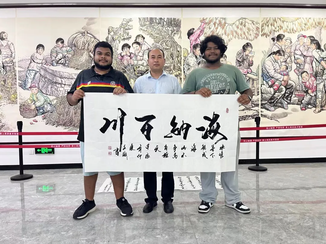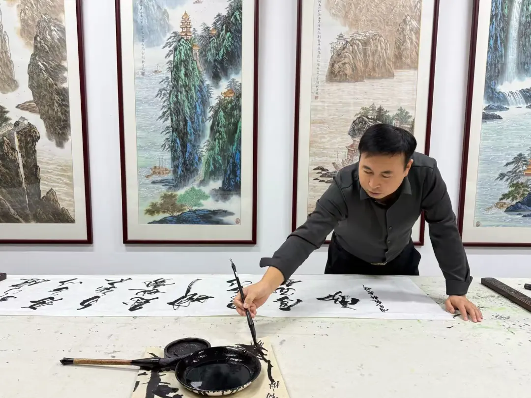 更值得称道的是,他的书法不仅“叫好”,更“叫座”——作品被井冈山革命博物馆、韶山博物馆永久馆藏,成为红色文化传承的重要载体;马尔代夫大使馆、伊朗大使馆将其作品作为文化交流信物,让中国书法走向世界;加拿大、德国、日本、韩国、新加坡及中国台湾地区的知名人士纷纷为其作品点赞,让“中国字”成为跨越国界的文化语言。刘文斌的艺术之路,始终与国家文化战略同频共振。他秉持“以人民为中心”的创作导向,将个人艺术追求融入时代洪流。这正是新时代文艺工作者“讲好中国故事、传播中国声音”的生动实践,也与国家“推动中华优秀传统文化走出去”的文化战略同频共振。