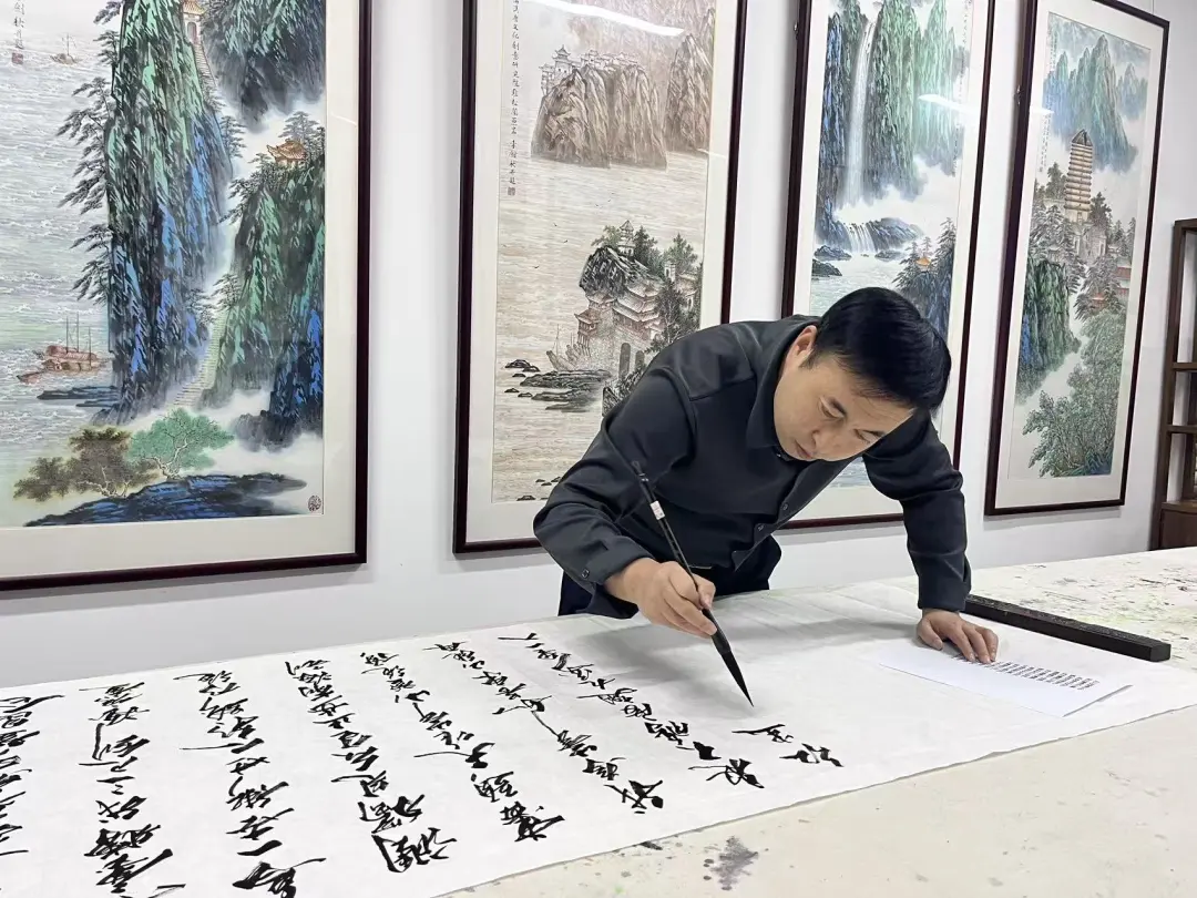 “我这一辈子,就想做好一件事——把书法写好,把文化传好。”谈及未来,刘文斌的愿景朴实而坚定。他希望创作出更多“百姓喜闻乐见的精品”,让书法不再是“象牙塔”里的艺术,而是走进寻常百姓家的“精神食粮”;他希望通过自己的作品,唤醒人们对美好生活的向往,为社会留下一笔“可传承的精神财富”;他更希望与陕西汉唐文化创意研究院的同仁们一道,继续扎根传统、守正创新,以笔墨书写时代气象,以作品传递中国声音。他表示:“作为文艺工作者,我们要始终牢记初心使命,用手中的笔讲好中国故事,唤醒人们对美好生活的向往,为社会留下真正有温度、有筋骨、有灵魂的文化财富。”为“传承汉唐文脉、建设文化强国”贡献力量!