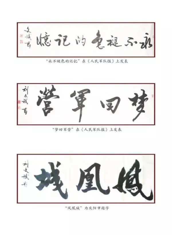 军旅生涯是刘文斌艺术人生中浓墨重彩的一笔。穿上军装,他是保家卫国的忠诚卫士;脱下军装,他仍葆军人的坚毅本色。在军营的岁月里,他从未放下手中的笔——训练间隙挥毫,熄灯后灯下研帖,作品多次发表于《解放军报》《人民军队报》《中国青年报》等权威媒体,更收录于《永不褪色的记忆》等经典书刊。“部队给了我强健的体魄、坚强的意志,更教会我‘持之以恒’的做事精神。”回望军旅时光,刘文斌感慨万千。这份从军营中淬炼出的“韧劲儿”,化作他笔墨间的刚健风骨,让他的书法既有着行草的灵动洒脱,又暗含军人的铁骨丹心,形成“刚柔相济、神形兼备”的独特风格。