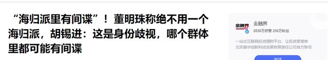 紧接着,前环球时报的总编胡锡进也加入了这场舆论讨论,并且态度十分强硬,这种言论有“违反就业促进法”,是对海归群体明目张胆的歧视。