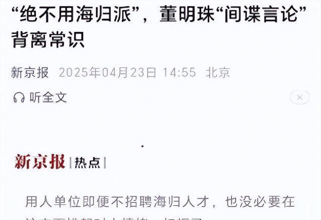 但真正在网络上引发“腥风血雨”的,是董明珠的第三个决断——“绝不用海归派,海归派里有间谍”。