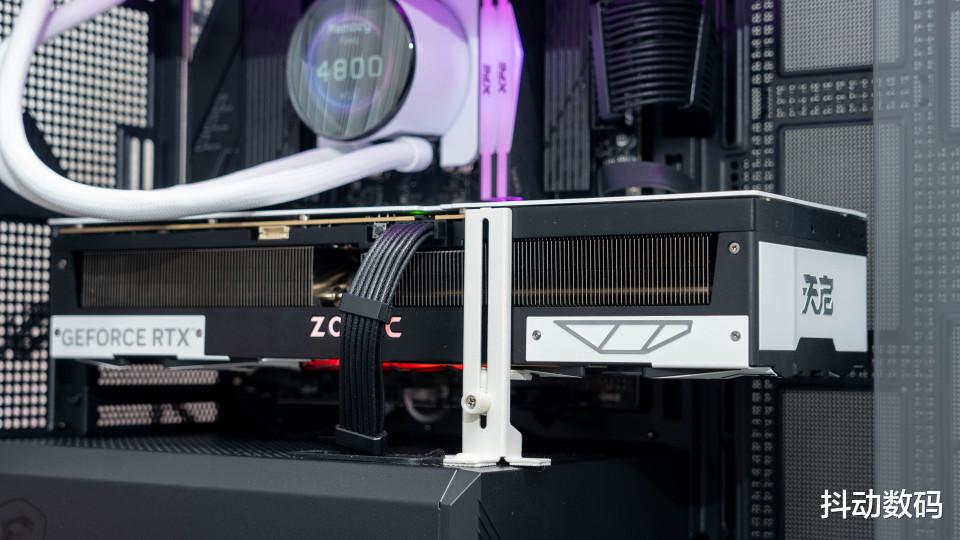 整体一套配置中,为了方便测试游戏性能且与整机黑白配色搭配这里还选择了索泰 RTX 5080 天启 OC显卡作为测试显卡。361*73*138mm的尺寸在这款MATX规格的机箱内也不会有安装问题。