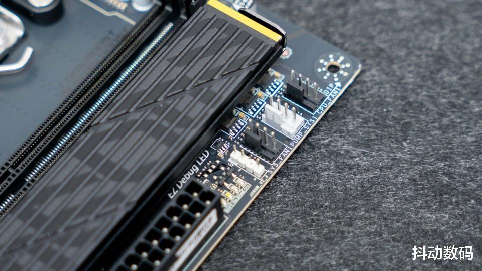 风扇接口与5V ARGB灯光接口都设计在24Pin 供电一侧,距离位于处理器略远,装机里理线的时候需要注意走线以及线材隐藏。