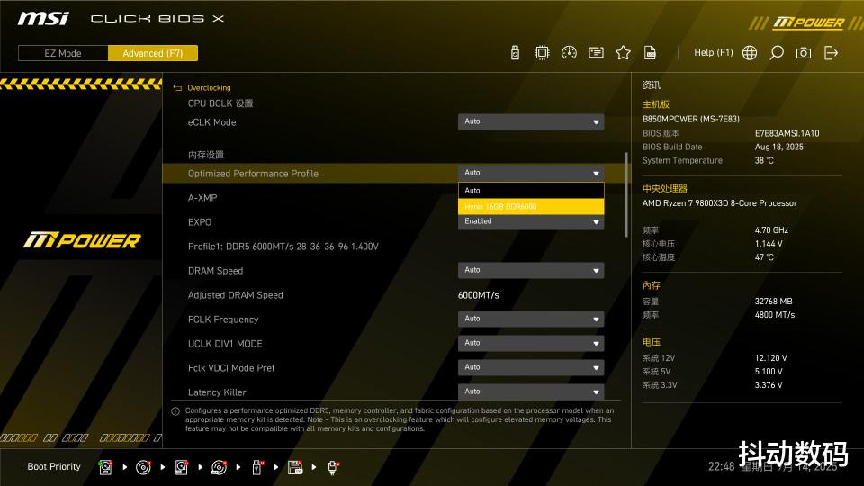 采用海力士原厂颗粒设计,CL28的内存时序也可以实现更好的读写表现。另外不锁电压的设计,搭配微星B850MPOWER主板也可以实现更好的超频表现。