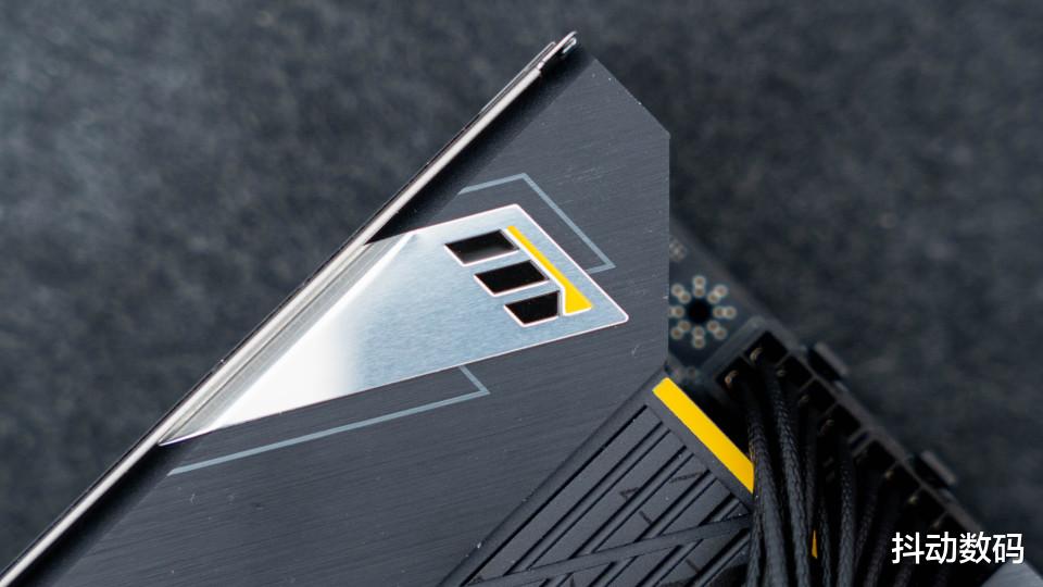 外观方面搭配了金属散热马甲,马甲表面通过金属拉丝处理后效果细腻,中间三角形的导光条与顶部连为一体。