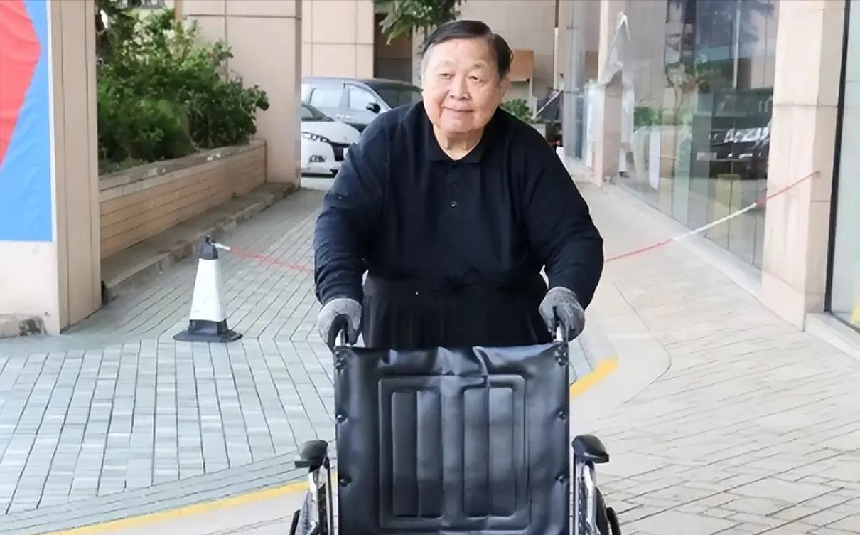 77 岁的秦煌独自一人在医院门口,坐着轮椅孤零零一人,身边连个陪同的都没有。