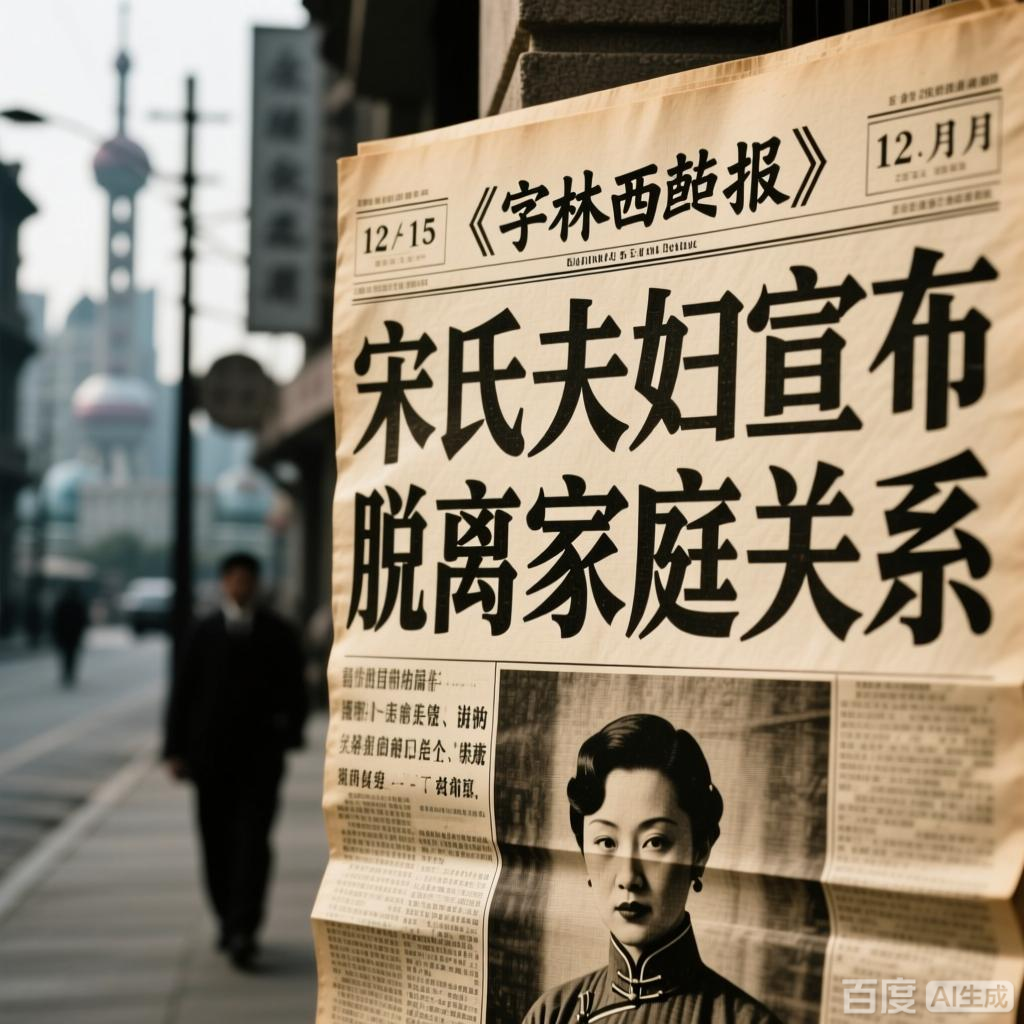 1915年12月,宋家在上海《字林西报》刊登英文声明:“宋氏夫妇宣布,次女宋庆龄未经父母同意私自结婚,自即日起,脱离家庭关系,一切行为,宋家概不负责”。
