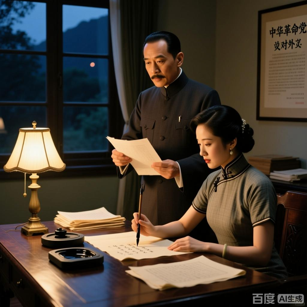 1914年11月,孙中山筹备“中华革命党””需发布英文对外宣言。某夜,孙中山口述,宋庆龄执笔,两人工作至凌晨三点。这一夜,宋庆龄似乎很难忘记。她在1975年回忆说:“那天他讲得很快,我手写跟不上,他便亲自帮我磨墨、递纸。我第一次看到他眼中那种‘为理想燃烧’的光。那晚之后,我知道,我愿为这个人付出一切” 。