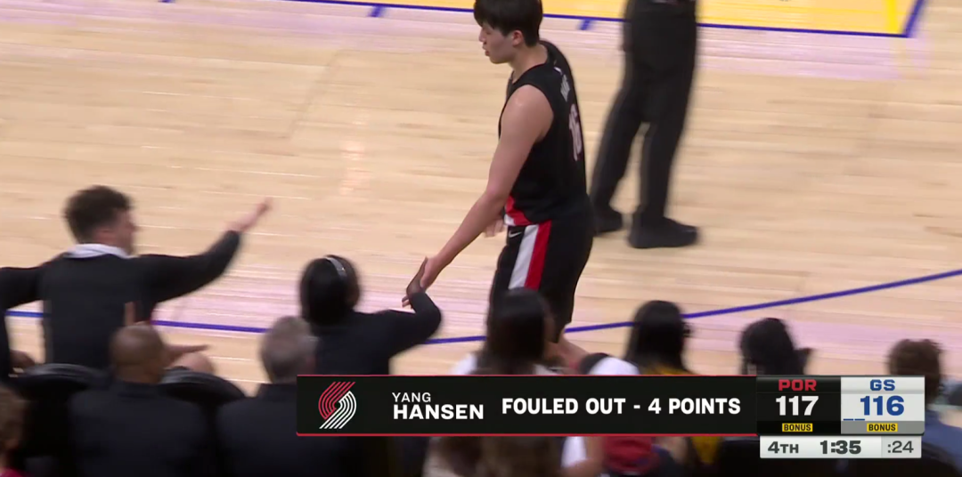 能看出来的一点是,开拓者确实在认真培养杨瀚森,给的上场时间够多,如果不是末节吃了4犯被罚下场,本场关键时刻也能留在场上。