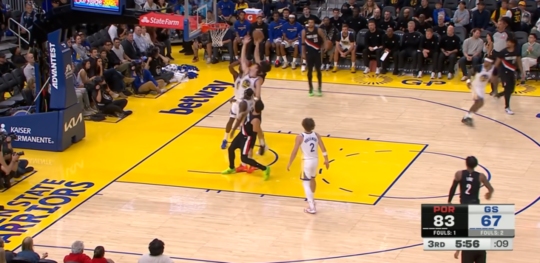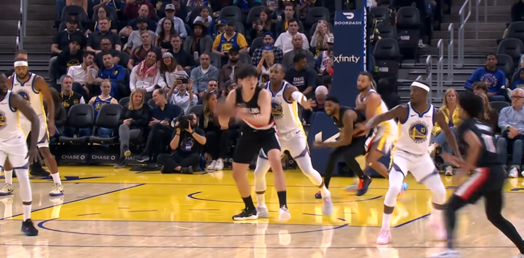 不到2分钟后,杨瀚森再次得分,这一次在库明加和波斯特的包夹下完成一记单手补篮,此后他还有一次三分出手,可惜没有投进。