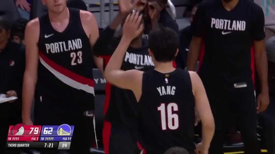 亮点也是有的,虽然触球不多,但几次传球手法和时机都很漂亮,看得出他的特别之处;且杨瀚森的挡拆很实在,开局夏普就利用杨瀚森的挡拆两次得分;调整能力也不错,上半场不适应,第三节马上调整了回来(也是因为勇士下了主力)。