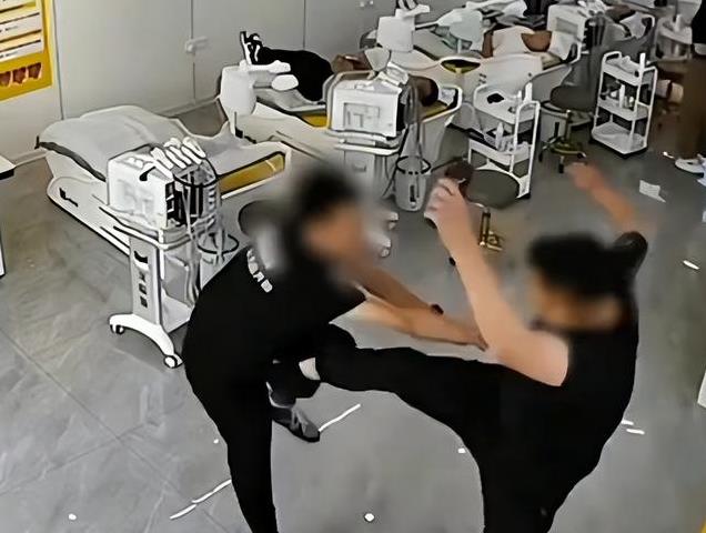 换来的,是男子的一个差评,直言用餐很不愉快,并将商家的态度描述的淋漓尽致。没想到,过了一会,膀大腰圆的的商家,根据送餐的地址,找到了男子所在的一家护肤品店。进门便大喊谁给的差评?!然后两人发生口角骂了起来,再之后,商家使出了右鞭腿,踹向男子的肚子,男子猛的朝后退去,勉强稳住身形。
