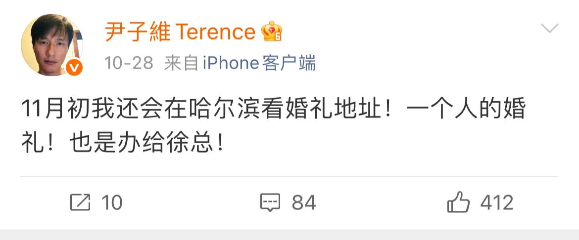 甚至在10月28日,尹子维在社交平台连发多条动态,称徐冬冬“不想参加婚礼”,而自己仍会于2026年2月26日在哈尔滨独自办婚礼,引发网友热议