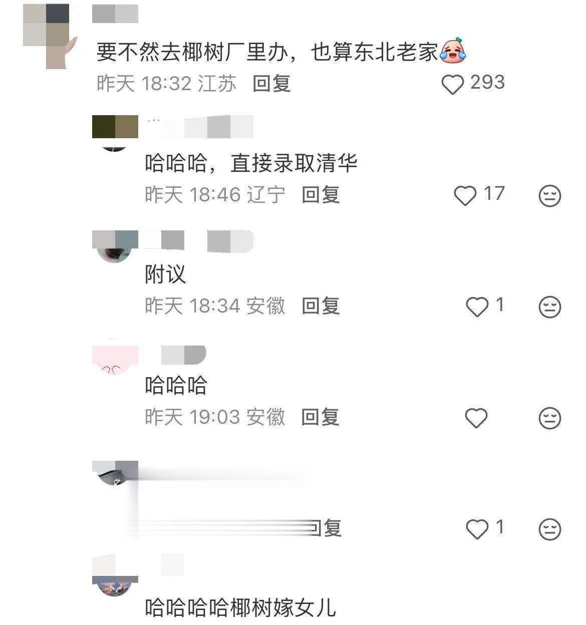 众所周知,徐冬冬是椰树椰汁的代言人,有网友就调侃婚礼可以去椰树厂里办,也算东北老家了。