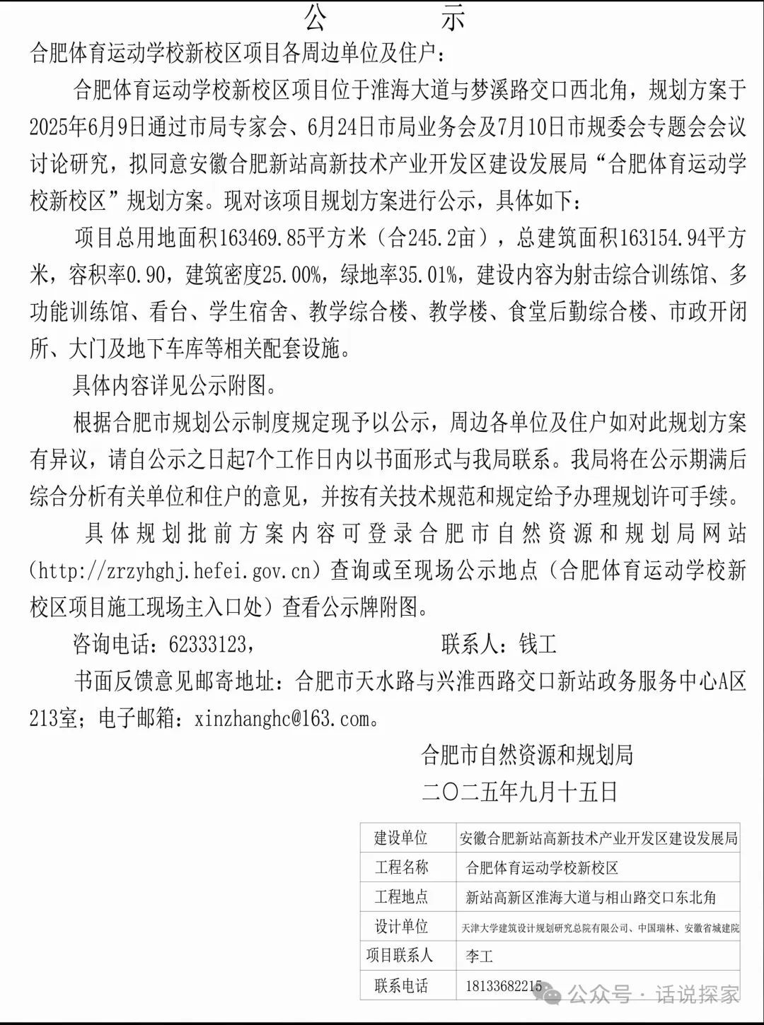 合肥体育运动学校新校区规划方案公示,项目位于新站区淮海大道与梦溪路交口西北角,现对该项目规划方案进行公示。
