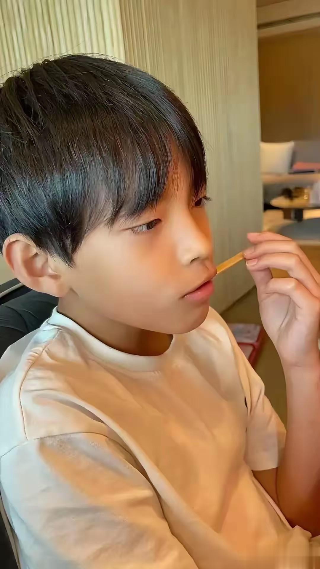而且小箖箖皮肤黝黑,很有阳刚之气,这要是长大了,肯定比爸爸汪小菲更帅,更受女孩子欢迎。
