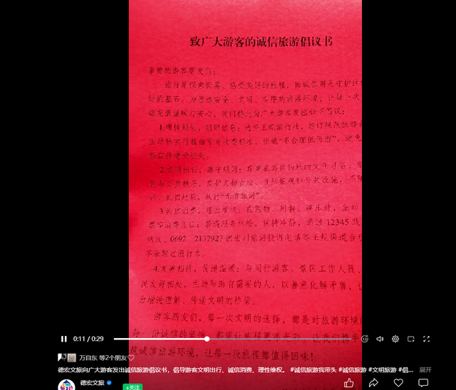 公文大比拼!云南多州市“诚信旅游我带头”《倡议书》