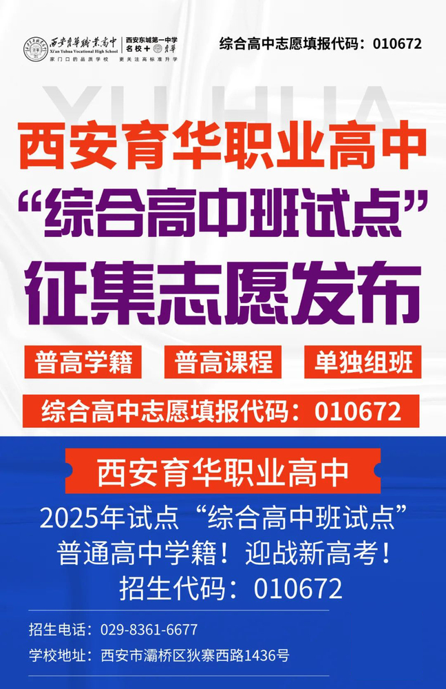 西安育华职业高中位于西安市灞桥区狄寨西路1436号,拥有领先的数字化教学设施和智能化生活设施。学校秉持“较真精神”、发扬“五精文化”、深化“五育并举”。坚持“健康身心、民族根基、国际视野、引领未来”的育人目标,培养学生习惯,提高学习能力,引导学生成人成才。