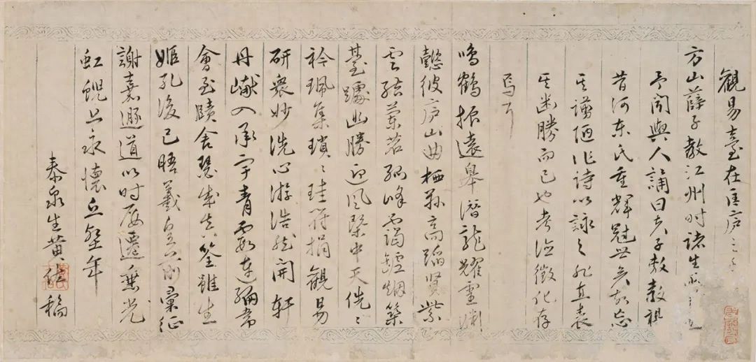 黄佐为薛应旂题《观易台诗》行草,纵24.8厘米、横51.9厘米,香港中文大学文物馆藏。
