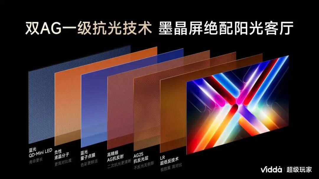 最让人惊喜的是,姜龙宣布:未来会把 “AG 抗光层 + LR 低反层” 下放到 2000 元价位的国民电视里。这才是 Vidda 的风格 —— 不把好技术藏在高端机里,而是让更多人用亲民价格享受到清晰、舒适的观看体验。