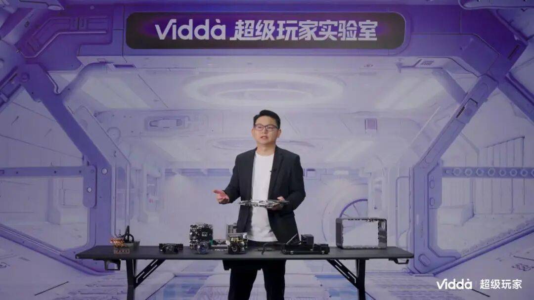 发布会一开场,Vidda 就玩了把 “硬核” 的 —— 直接把 C5拆了,核心组件一字排开。从光源到 DMD,从镜头组到散热设计,一眼就能看出和市面上常见的投影仪 “不一样”。