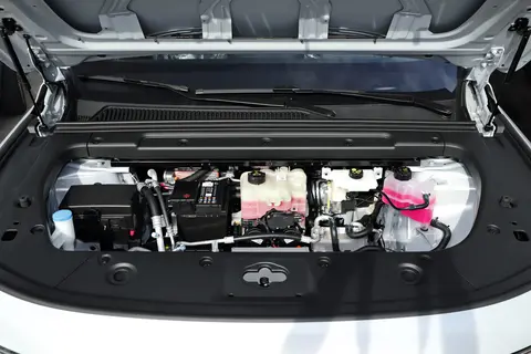储物能力也没让人失望。六座都坐满人的时候,后备箱还能放下两个 24 寸的行李箱,要是全家出游,放行李完全没问题。如果需要更大的空间,第三排可以单独按比例放倒,放倒后地面很平整,放个婴儿车、折叠自行车都很轻松。纯电版车型的后备箱底部还有额外的储物格,能放些零碎的小物件,不用堆在后备箱里乱糟糟的。