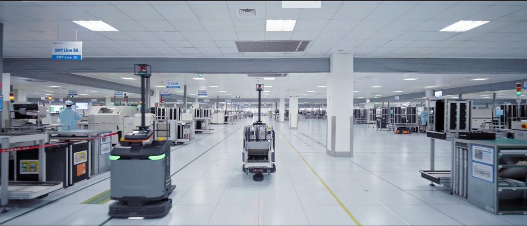 目前海康的工厂里配备了大量的移动机器人集群,整个工厂的内物流都由移动机器人挑大梁。物料能随着工厂生产节奏的变化,被精密地调度到了操作员工位,成为柔性、高效、敏捷生产的一部分。这个庞大机器人集群得以建成,就与其子公司海康机器人专注于智能制造和智慧物流场景的能力直接关联。
