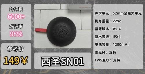 优点:这款西圣SN01蓝牙音箱凭借其卓越的音质表现荣获“西圣声学金标”,成为百元价位中性价比最高的音响之一。外观设计小巧可爱,采用圆弧形造型,并配有红色皮质挂绳,既美观又实用。