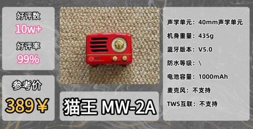 公认推荐第七款:猫王收音机MW-2A(389¥)