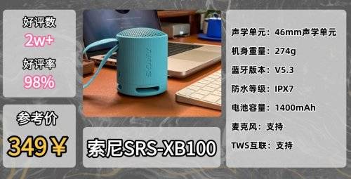 公认推荐第二款:索-尼SRS-XB100 (349¥)