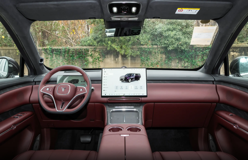 内饰配色有三种可选,细节设计和用料都很用心,彰显出一款旗舰级SUV该有的身份地位,悬浮式中控屏和仪表盘都属于常规设计,空调出风口采用隐藏式布局,一方面优化视觉效果,另一方面方便安装拓展坞。驾驶员通过仪表盘以及55英寸AR-HUD抬头显示读取行车信息,虽说车内有大屏,但考虑到实用性依旧保留了一排实体按键,这点还是很人性化的。