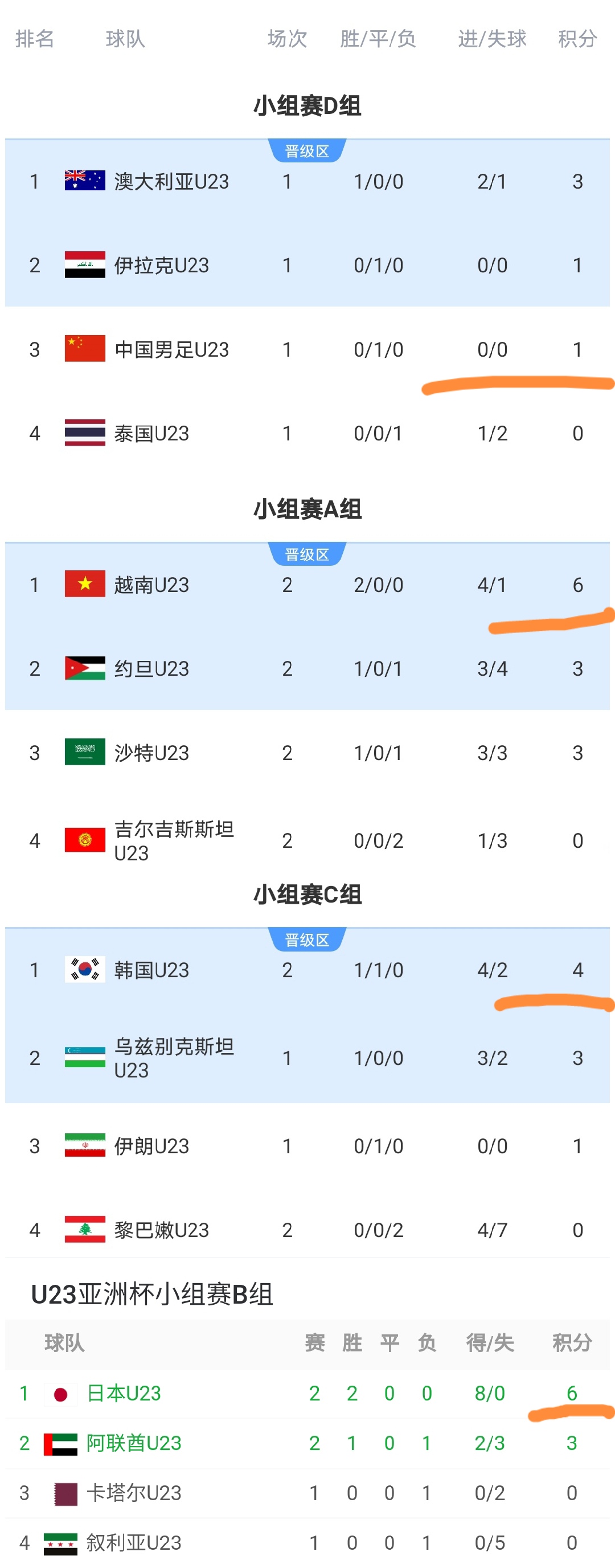 此外越南也在自己的小组领跑,中国男足在D组排名第三,仅差榜首2分,中国男足本次目标是冲击八强,因为此前中国男足还没有从U23亚洲杯小组赛突围过。