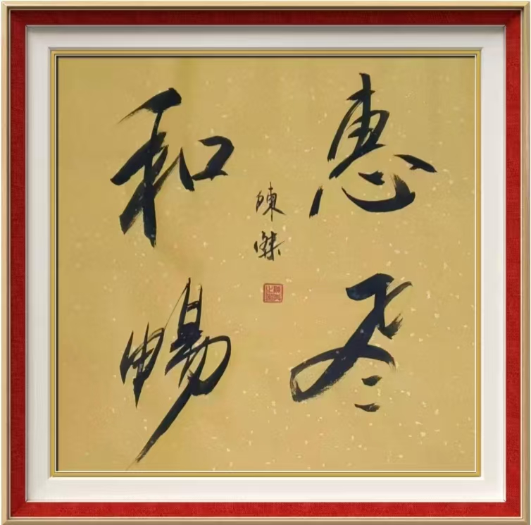 7 岁学习七种乐器,8 岁学习素描,13岁学习武术,18 岁开始学习书法,取书法家王羲之、米芾等,又在传统的基础上加入创新和佛经元素,以刚健雄强、苍茫老辣为风格,字中有画,画里有字,着实独具匠心。