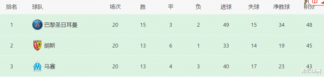 近阶段大巴黎状态堪忧,法甲联赛两回合接连不胜,随着近期持续掉线,大巴黎领跑积分榜的优势逐步萎缩。前20轮比赛结束后,他们15胜3平2败,积48分,尽管仍位居法甲第一,但仅比排在第二位的朗斯多了3分。争冠的情况不甚乐观。