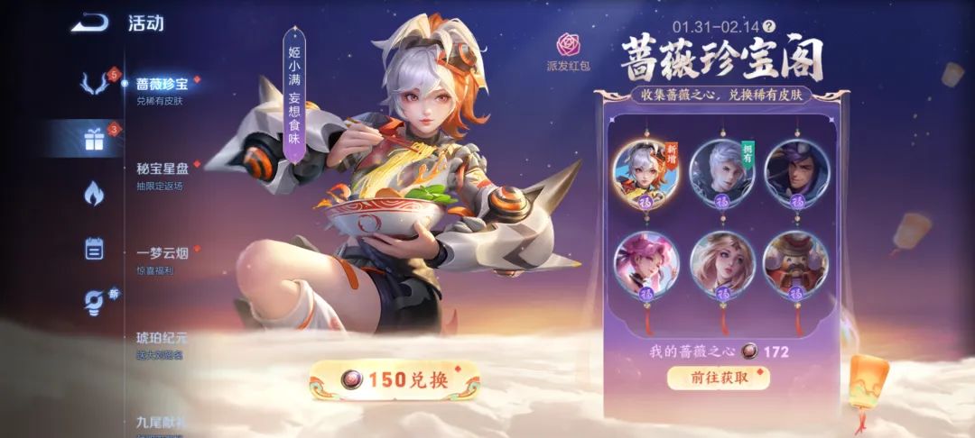 蔷薇珍宝阁,姬小满全新史诗皮肤上线,蔷薇之心够的朋友可以考虑去兑换一下,皮肤特效很不错。