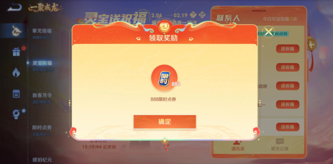 活动3:灵宝送祝福,瓜分1亿现金,发红包领限时点券