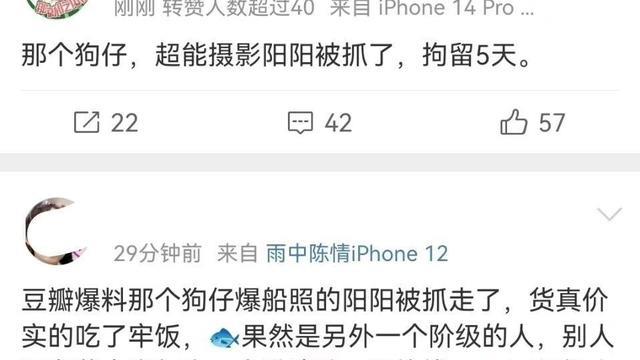 娱记阳阳除了发文回应被抓一事之外,他还在评论区里和网友互动。